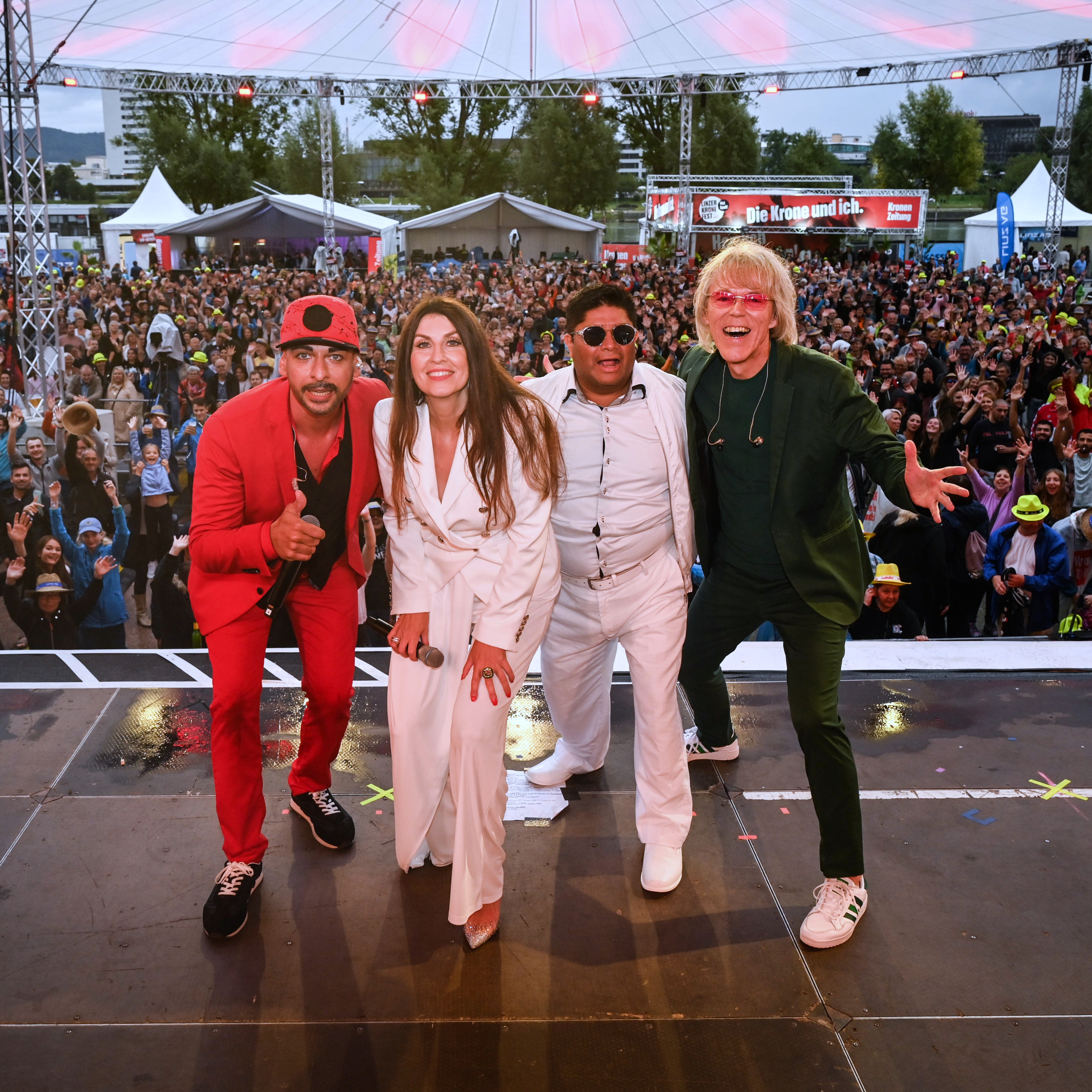 2022 war ein Sommer voller Highlights für INSIEME. Das Italopop-Quartett (Erik Arno, Monika Ballwein, Christian Deix & Rene Velazquez-Diaz) begeisterte Tausende von Zuschauern bei zahlreichen ausverkauften Konzerten. Unter anderem am Wiener Donauinselfest, auf der Burgarena Finkenstein, im Wolkenturm Grafenegg, im Schloss Weitra oder beim Krone Fest in Linz. Abschließender Höhepunkt der Tournee war die TV-Aufzeichnung des Radio Wien Klubkonzerts im Radiokulturhaus in Wien. (Foto: Markus Wenzel)