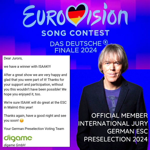 Christian Deix war eingeladen, als Juror an der deutschen Vorausscheidung zum Song Contest 2024 teilzunehmen. Als Mitglied der österreichischen Fachjury galt es, die insgesamt 9 Kandidat:innen zu bewerten. Besonders erfreulich ist, dass sich der Sänger ISAAK, den Christian Deix als Favoriten eingestuft hatte, durchsetzen konnte und sowohl von den Experten als auch vom Publikum auf Platz 1 gewählt wurde.